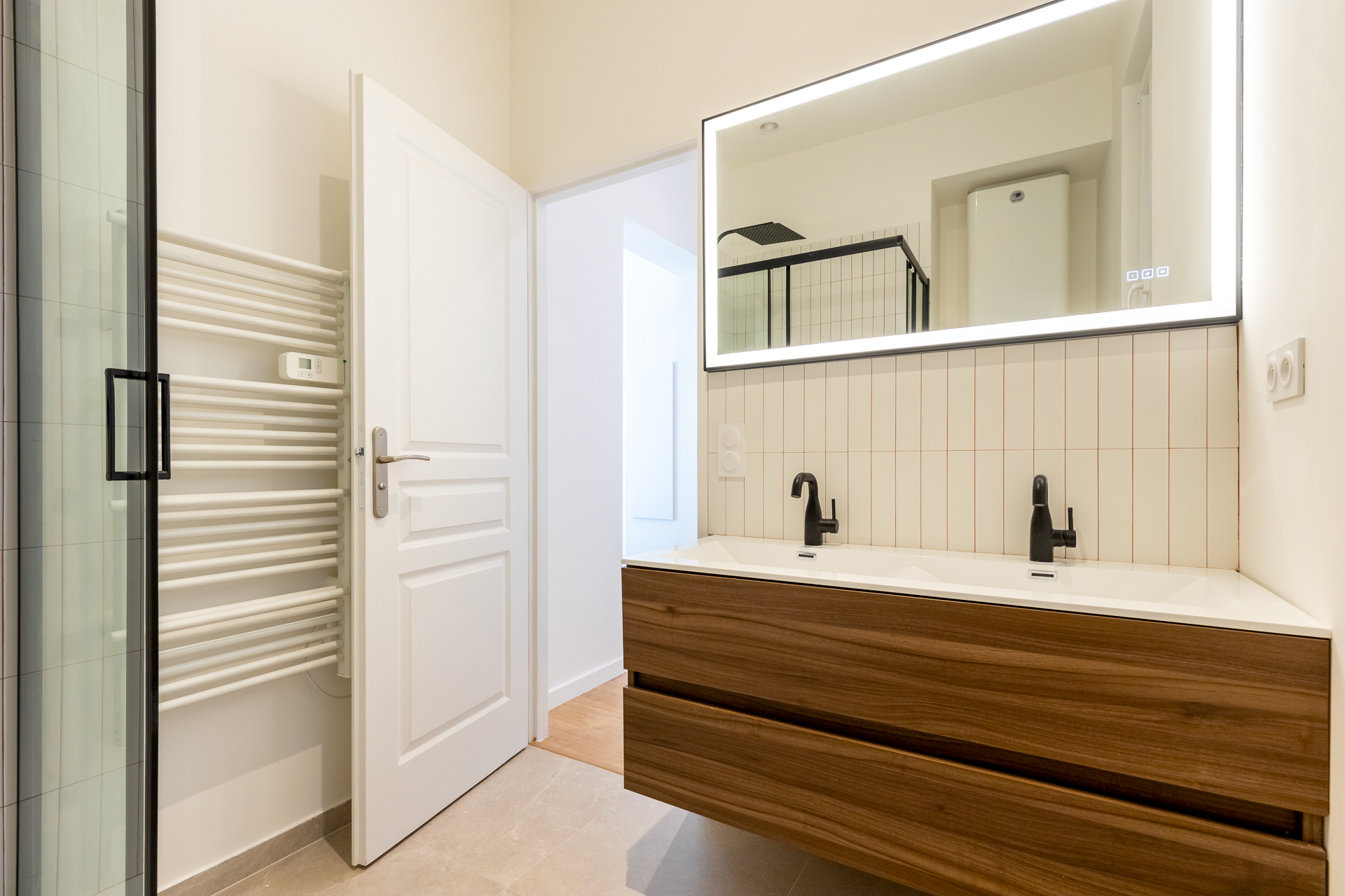 Les deux logements ont été entièrement rénovés, avec redistribution des espaces, création de cuisines équipées, salles d’eau contemporaines et espaces nuit confortables.