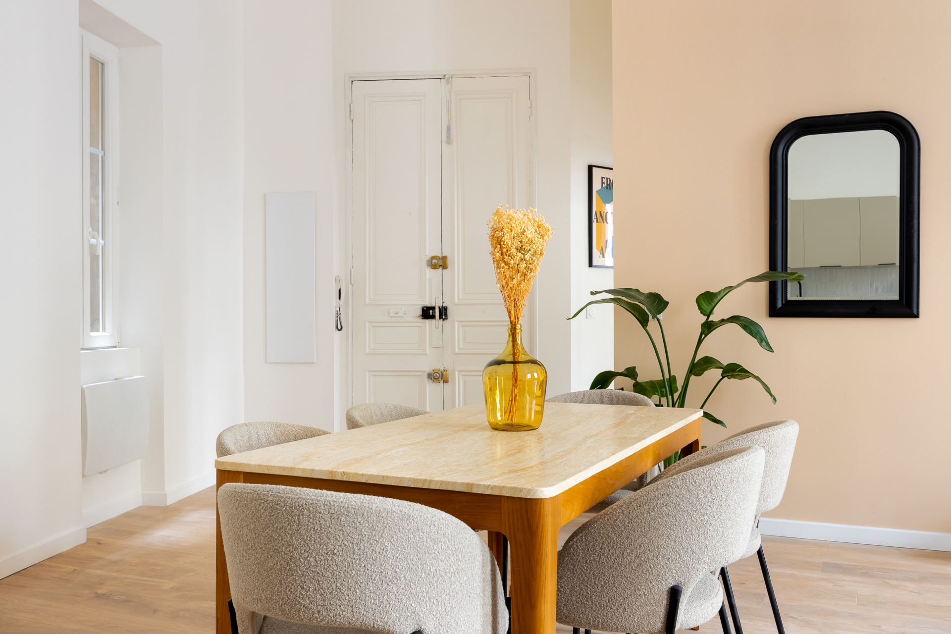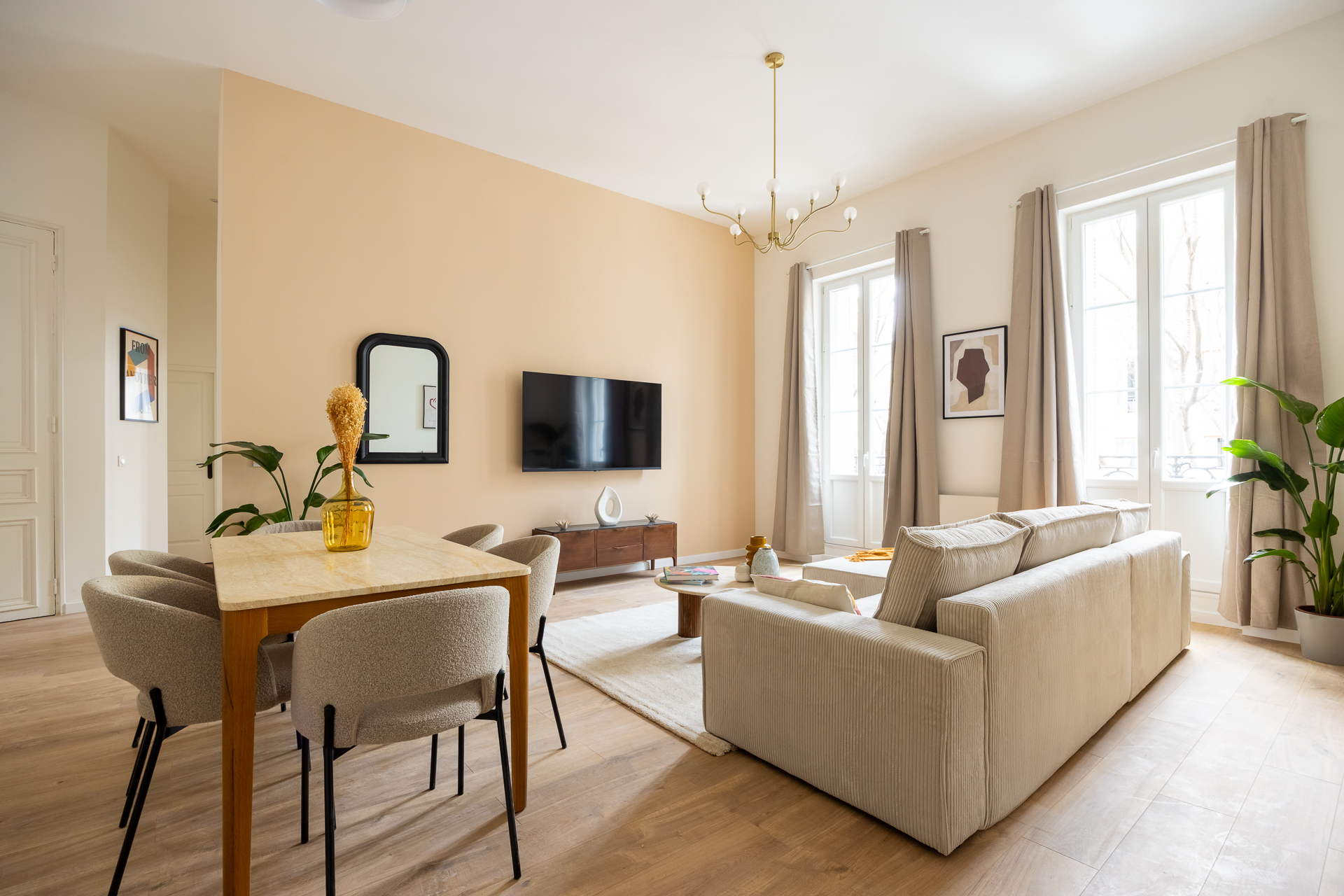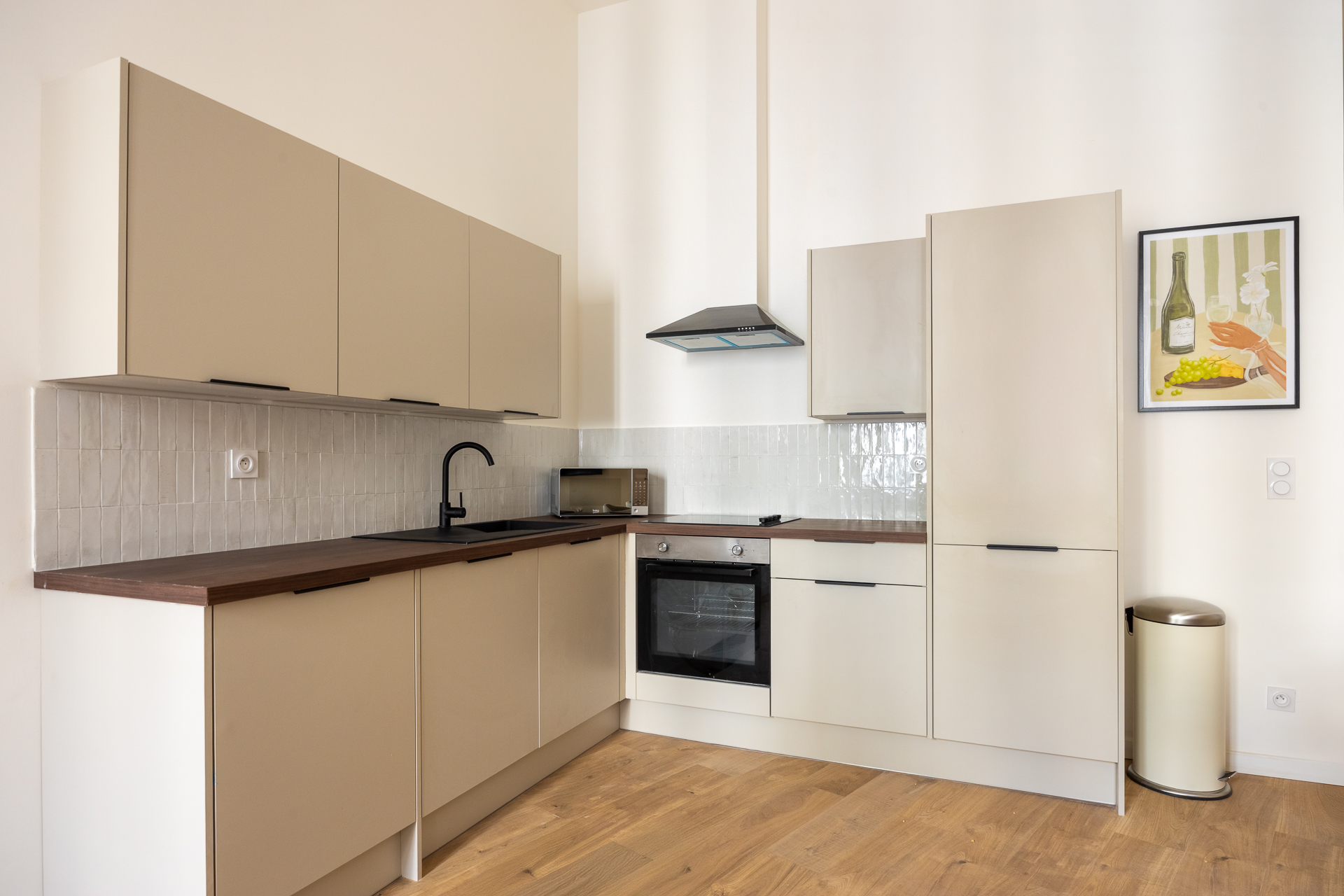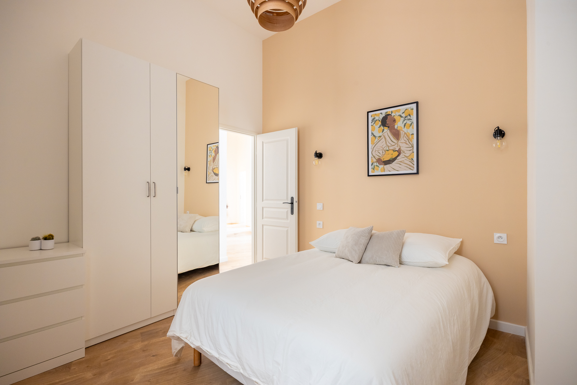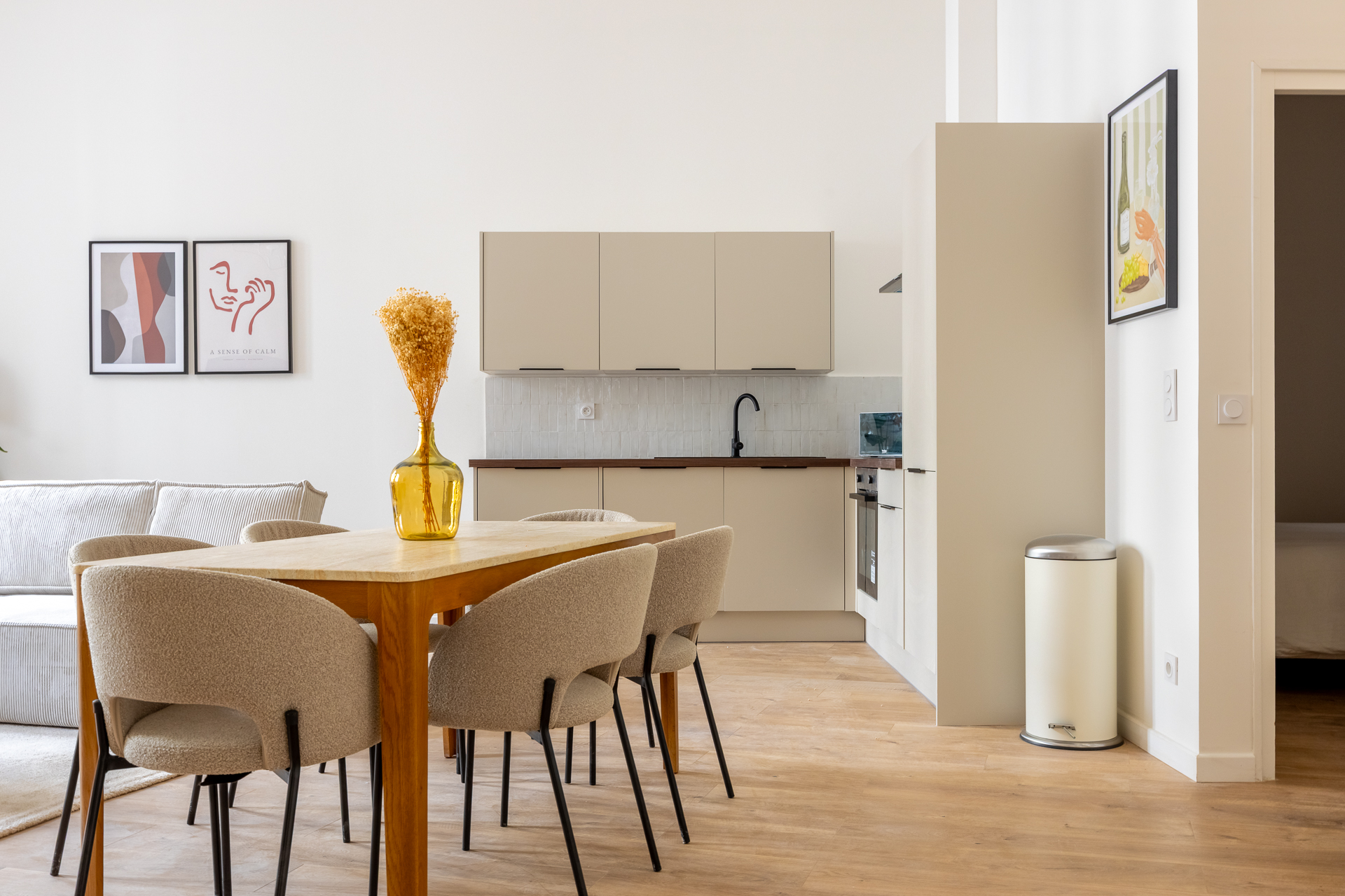 Notre architecte d’intérieur a totalement repensé le plateau pour créer une véritable vie en communauté, sans compromis sur le confort individuel. Chaque chambre dispose d’un espace bureau, les pièces d’eau ont été doublées, et les parties communes pensées comme un lieu de vie chaleureux, avec cuisine haut de gamme, coin repas et espace détente.